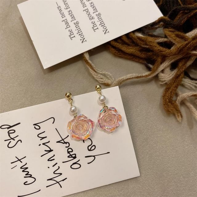 Faux Dangle Earring Alloy Floral Pearl