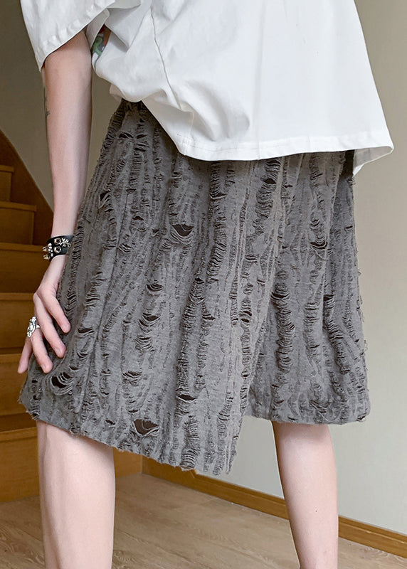 Original Design Grey Hole Elastic Waist Cotton Mens Shorts Summer
