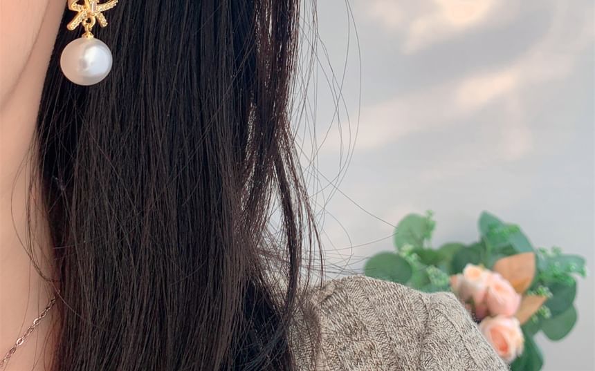 Huggie Rhinestone Pearl Faux Earring Drop Bow