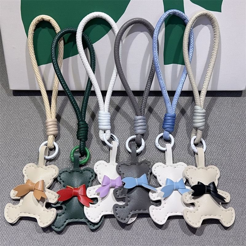 Bear Faux Leather Phone Strap with Lanyard Pad and Strap