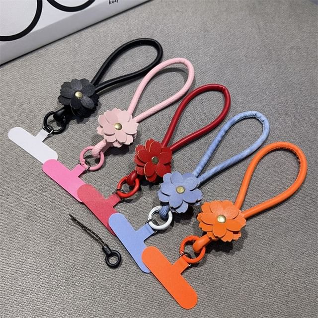 Floral Faux Leather Phone Strap with Lanyard Pad and Strap