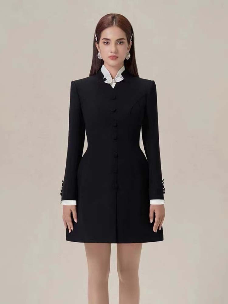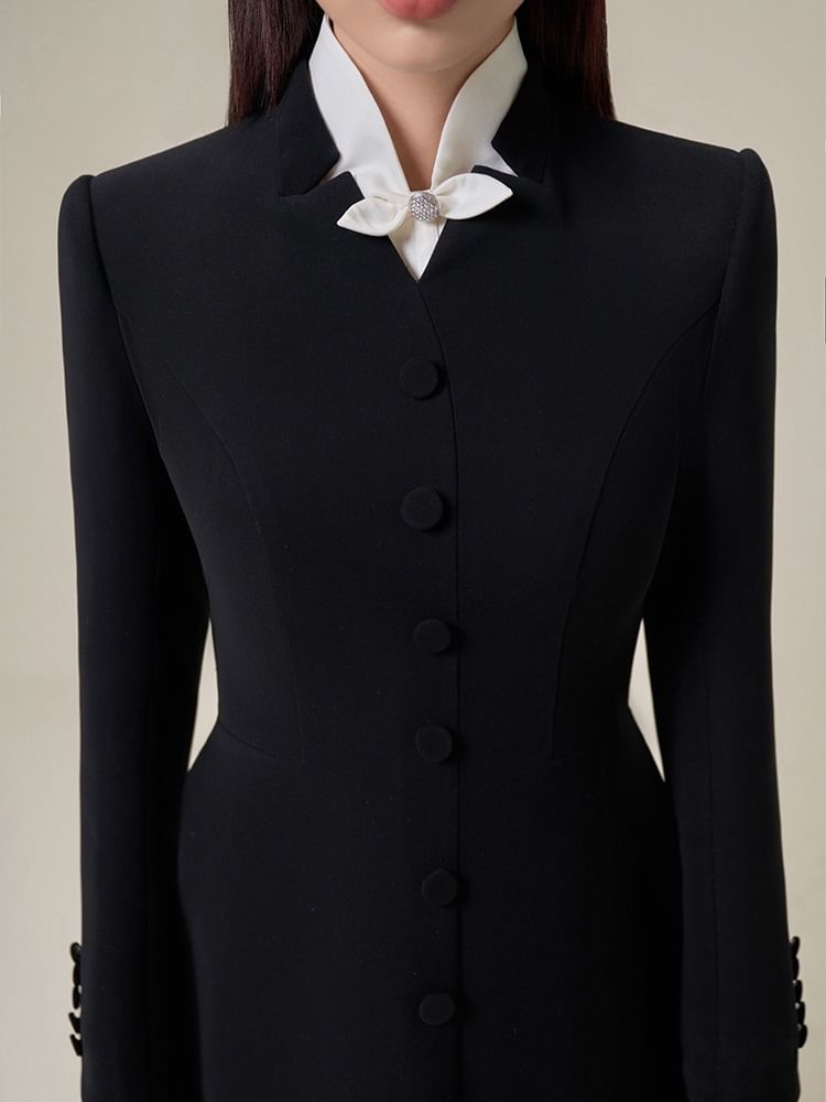 Long-sleeve Plain Contrast Trim Mini A-Line Dress