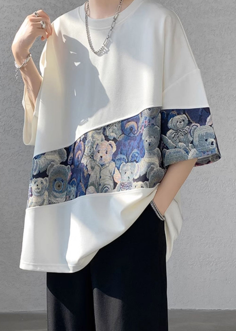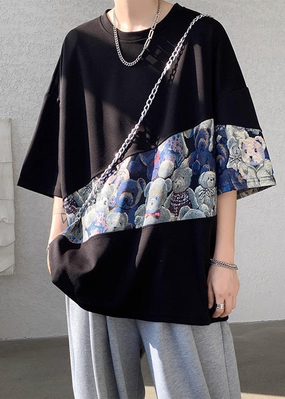 Casual Purple O Neck Patchwork Cotton Men T Shirt Summer