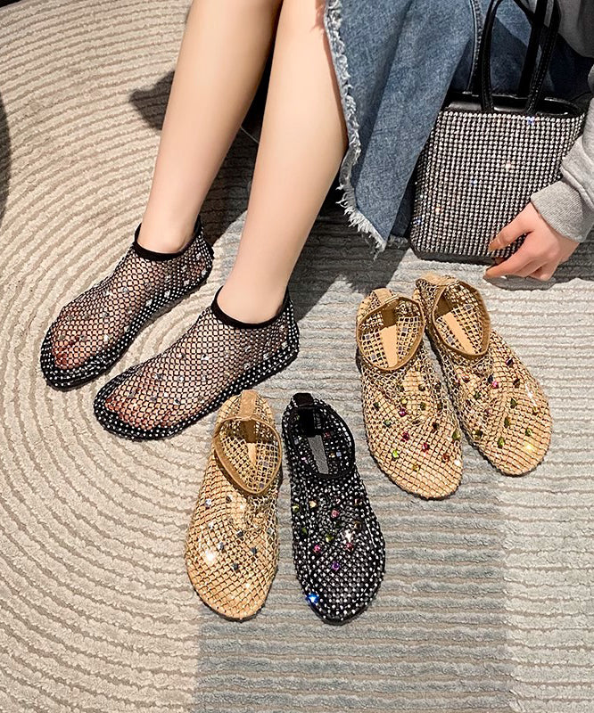 Multi Black Chic Zircon Boots Mesh Splicing Breathable