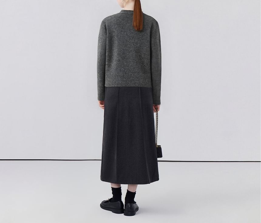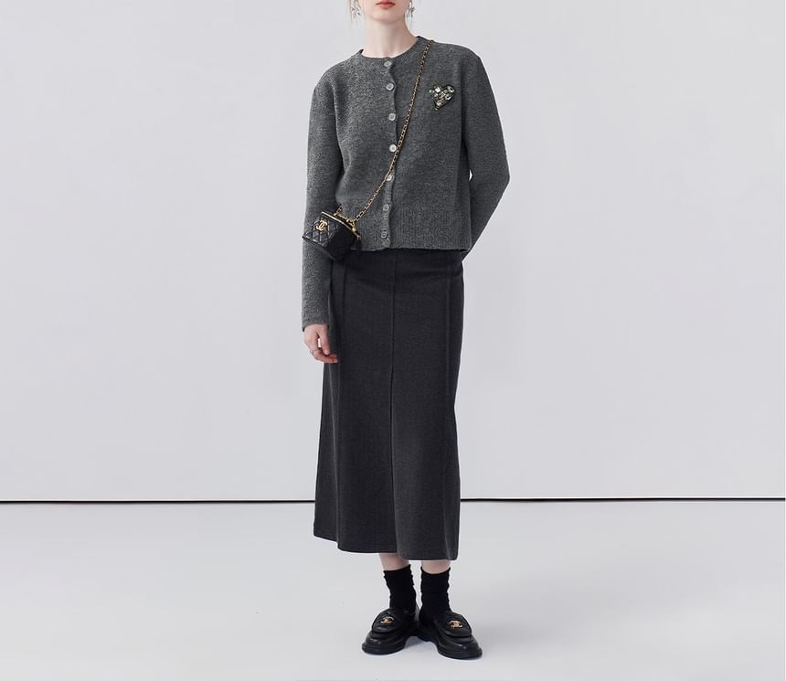Round Neck Melange Heart Accent Cardigan