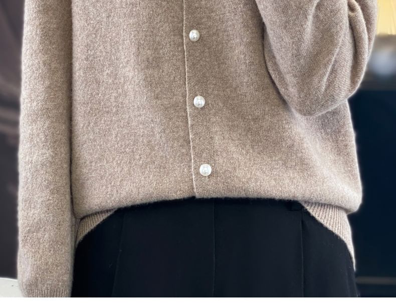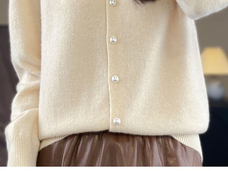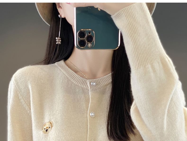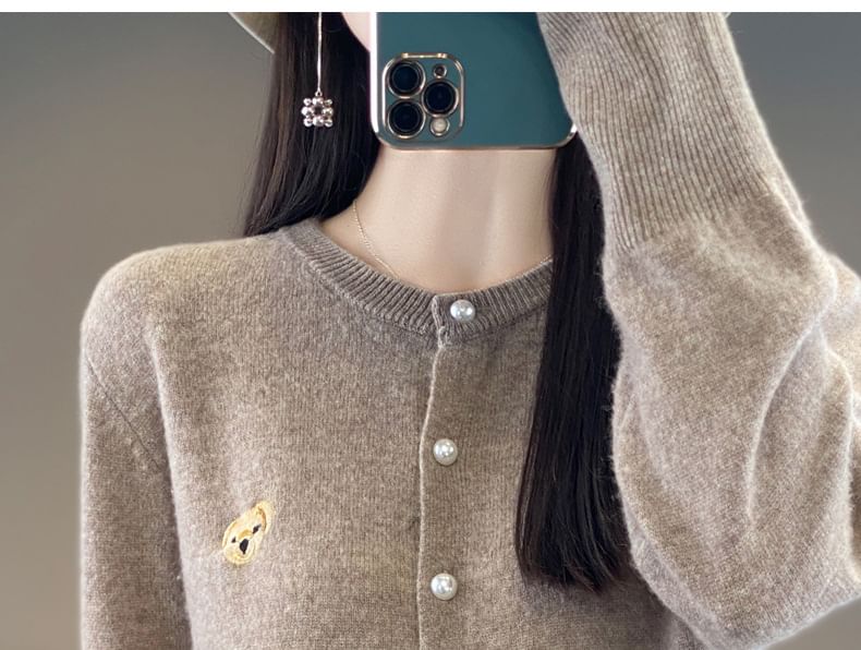 Round Neck Dog Embroidered Faux Pearl Button Cardigan