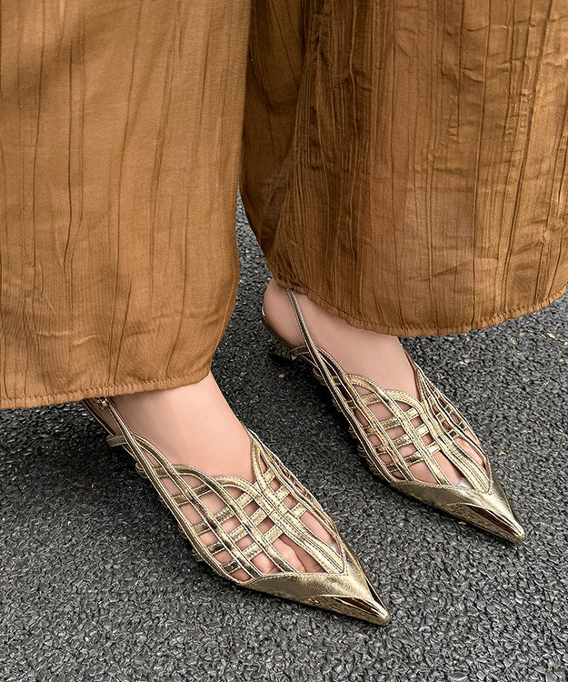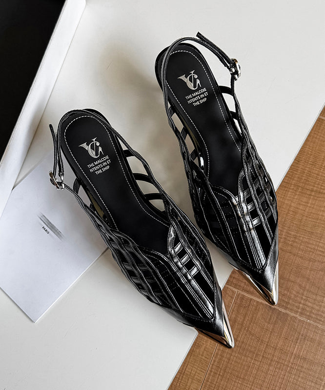 Chic Black High Heel Cowhide Leather Hollow Out Splicing Sandals