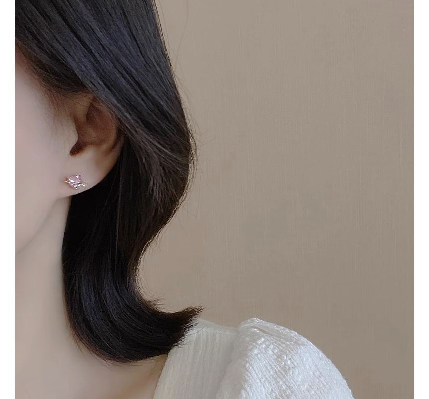 Heart Planet Rhinestone Sterling Silver Stud Earring