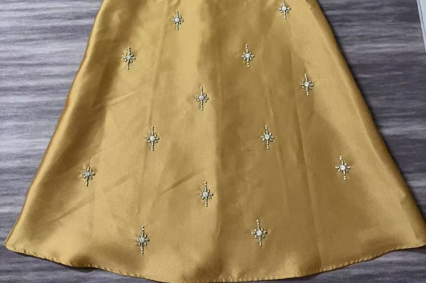 Strapless Beaded Two Tone Maxi A-Line Dress