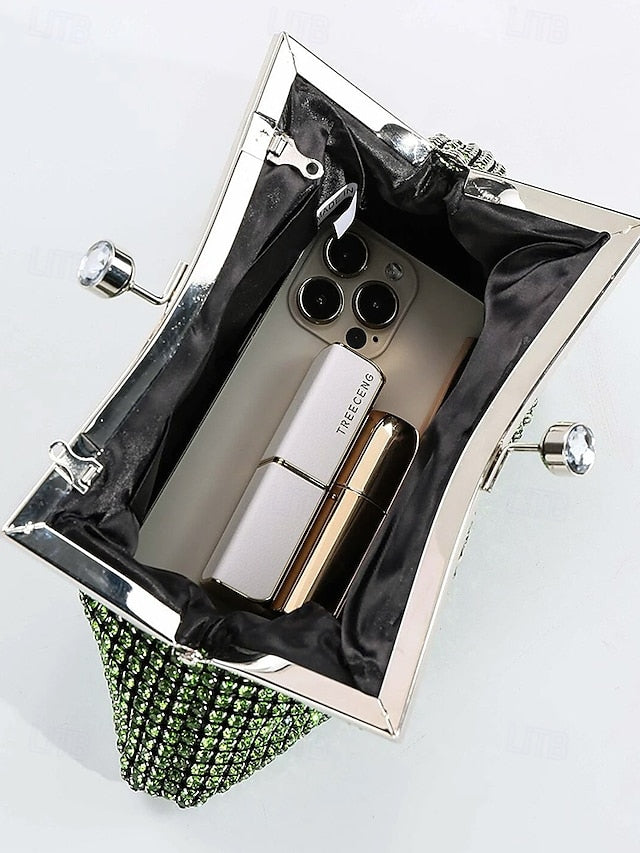 Vintage Sage Clutch Purse – Rhinestone Women's Green