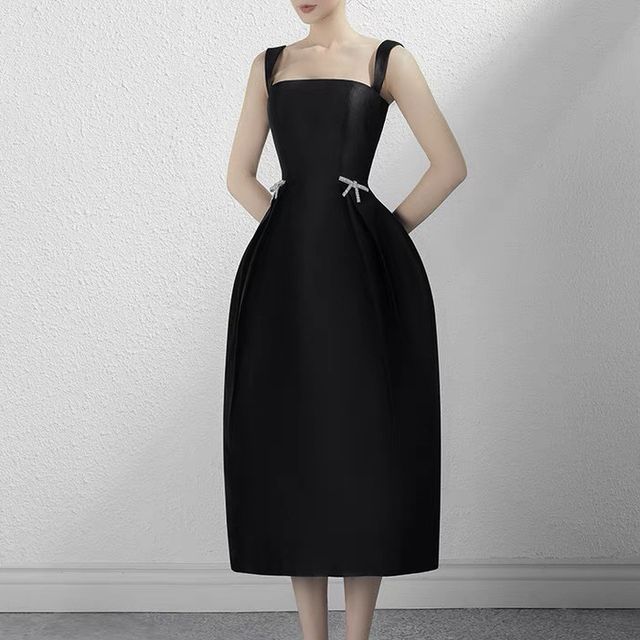 Wide Strap Rhinestone Bow A-Line Dress