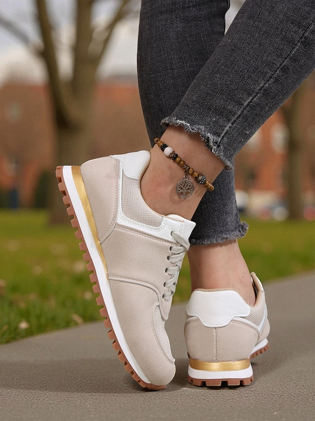 Women's Beige Classic Retro Jogger Sneakers – Casual Low
