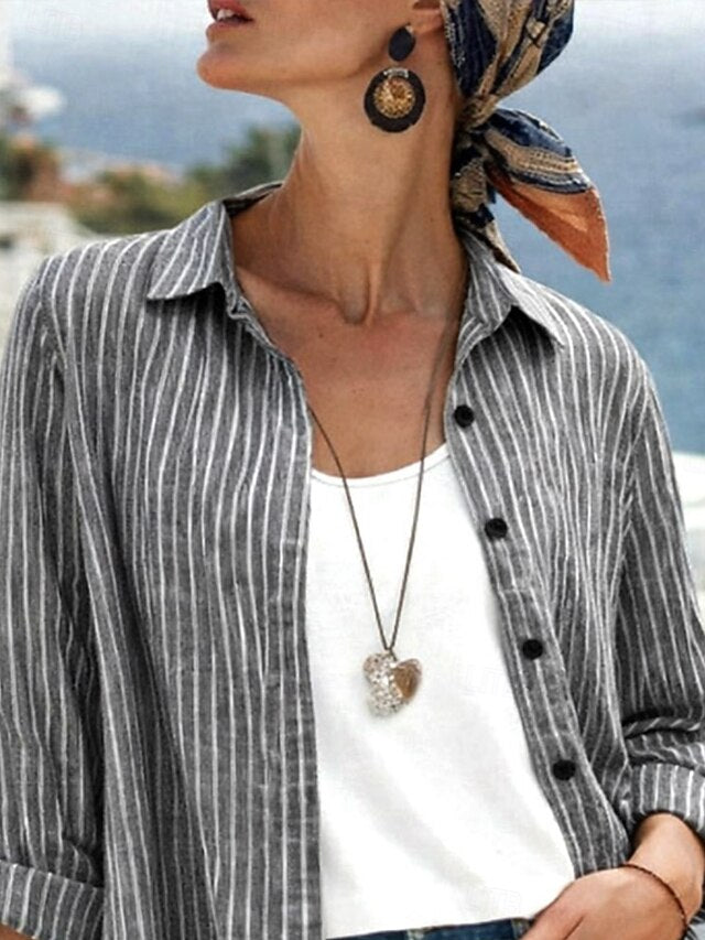 Women's Blouse Buttons Print Striped Vintage Stylish Casual