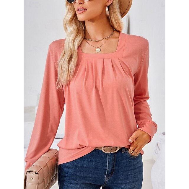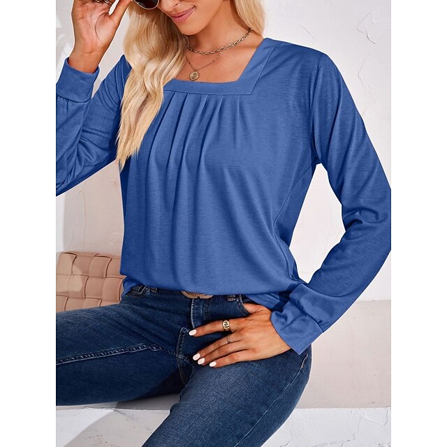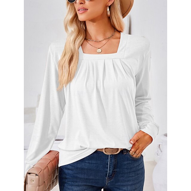 Fabric: Polyester, Tops Type: Blouse, Gender: Women's, Design: Ruched, Occasion: Daily, Style: Daily, Casual, Stylish, Fit Type: Regular Fit, Neckline: Square Neck, Sleeve Length: Long Sleeve, Elasticity: Stretchy, Look After Me: Washable, Hand wash, Machine wash, Top Length: Regular Tops, Pattern: Solid Color, Season: Fall, Winter, Spring,