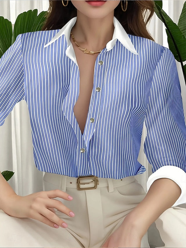 Women's Dress Shirt Blouse Buttons Print Striped Elegant