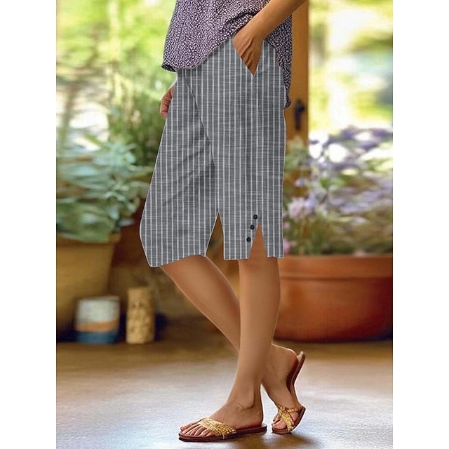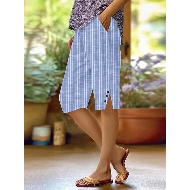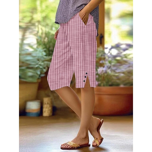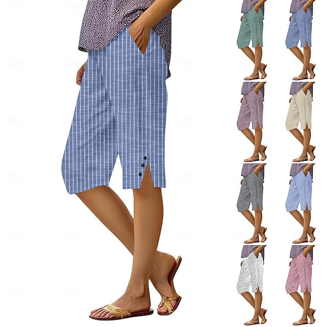 Gender: Women's, Pants Type: Faux Cotton Linen, Chinos, Crop, Style: Casual, Streetwear, Occasion: Daily Wear, Vacation, Street, Fabric: Polyester, Design: Pocket, Printing, Waistline: High Waist, Elasticity: Micro-elastic, Pants Length: Knee Length, Function: Soft, Breathability, Fit Type: Regular Fit, Pattern: Plain, Season: Fall,