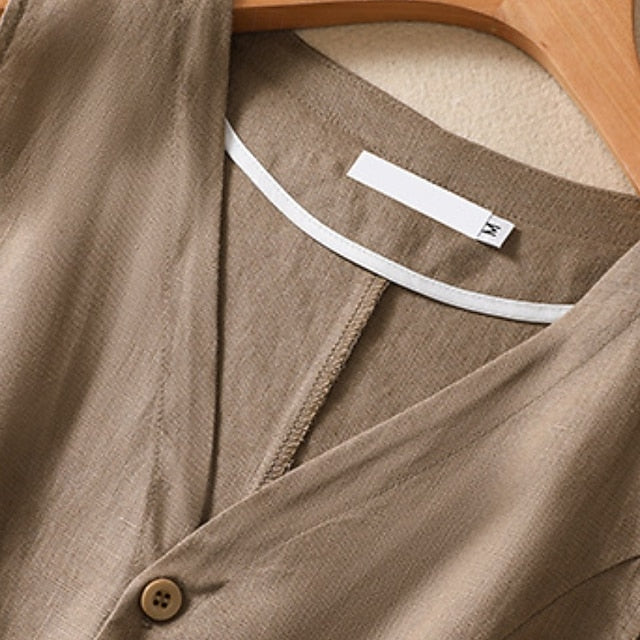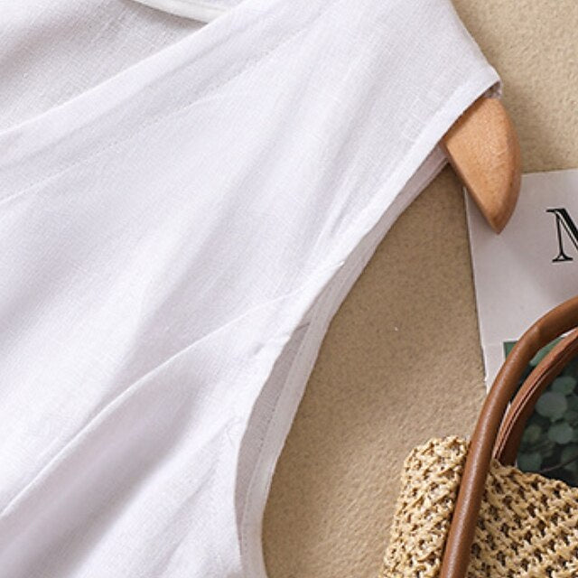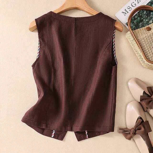 Women's Faux Cotton Linen Plain Modern Casual Sleeveless V