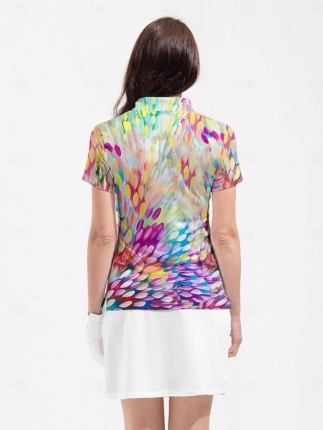 Gender: Women's, Age Group: Adults', Sports Clothing Sub Category: Golf Polo Shirt, Clothing Type: Top, Activity: Golf, Tennis, Pickleball, Occasion: Sports, Athleisure, Season: Summer, Fit Type: Regular Fit, Elasticity: High Elasticity, Function: Soft, Breathable, Moisture Wicking, Fabric: Spandex, 21 GRAMS Airful 2.0 Fabric, Polyester, Sleeve Length: Short Sleeve, Design: Zipper, Stand Collar, Pattern: Colorful, Look After Me: Wet and Dry Cleaning, Washable,