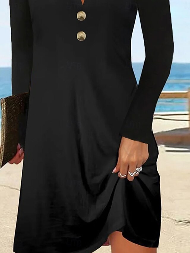 Dresses Type: Formal Dresses, Cocktail Dress, Black Dress, Fabric: Polyester, Gender: Women's, Design: Buttons, Occasion: Date, Vacation, Style: Elegant, Print Type: non-printing, Fit Type: Regular Fit, Dress Length Type: Mini Dress, Neckline: V Neck, Sleeve Length: Long Sleeve, Elasticity: Stretchy, Season: Spring, Fall,
