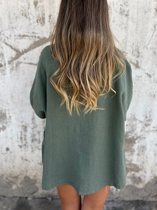Women's Shirt Button Up Blouse Faux Cotton Linen Buttons