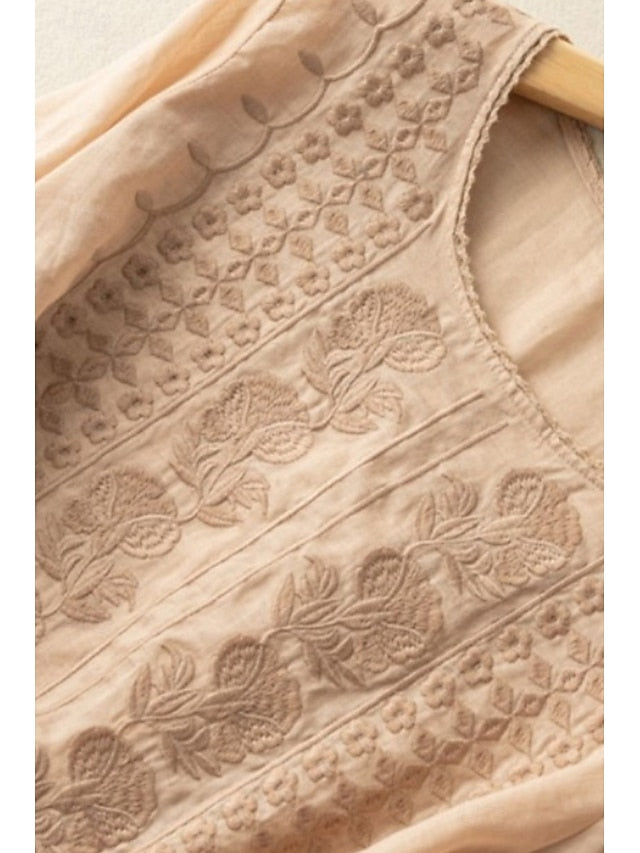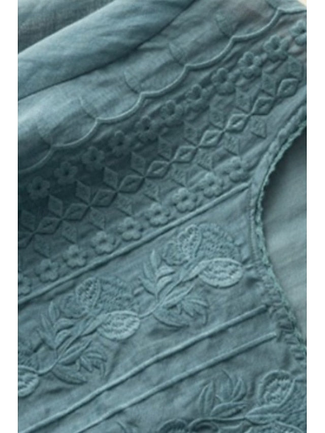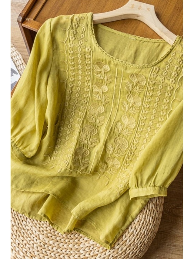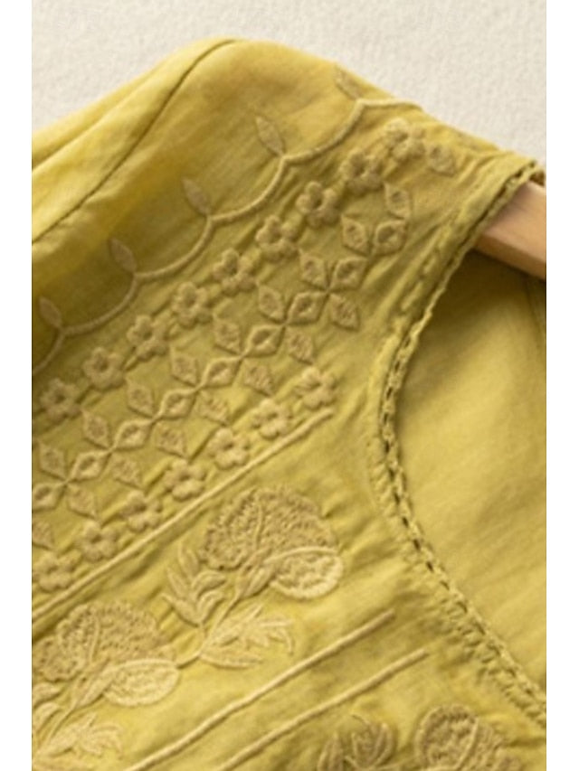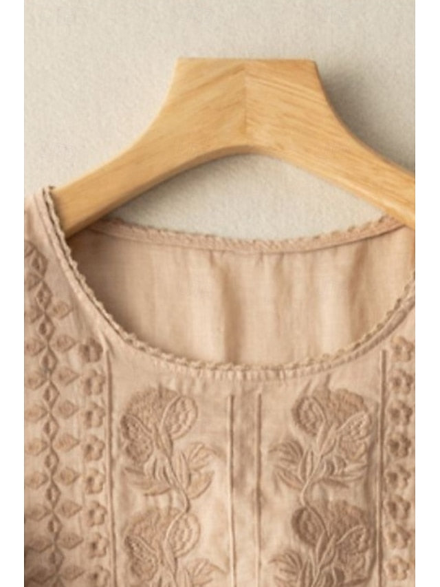 Fabric: Linen Cotton Blend, Gender: Women's, Tops Type: Blouse, Shirt, Cotton Blend, Occasion: Holiday, Daily, Going out, Design: Mesh, Style: Modern, Fit Type: Regular Fit, Neckline: Crew Neck, Sleeve Length: Half Sleeve, Elasticity: Micro-elastic, Look After Me: Machine wash, Top Length: Regular Tops, Pattern: Plain, Season: Summer,