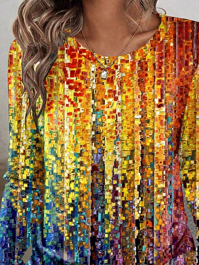 Tops Type: T Shirt, Fabric: Polyester, Gender: Women's, Occasion: Daily, Design: Print, Style: Modern, Classic, Stylish, Vintage, Casual, Trendy, Category: Long Sleeve T-shirt, Fit Type: Form Fit, Festival: Easter, Neckline: Crew Neck, Round Neck, Sleeve Length: Long Sleeve, Elasticity: Micro-elastic, Look After Me: Machine wash, Top Length: Regular Tops, Pattern: Graphic, Rainbow, Ombre, Season: Fall, Summer, Spring,