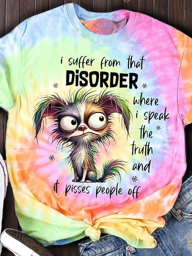 Fabric: Polyester, Gender: Women's, Tops Type: T Shirt, Design: Print, Occasion: Daily, Style: Casual, Category: T-shirt, Fit Type: Regular Fit, Neckline: Round Neck, Sleeve Length: Short Sleeve, Elasticity: Micro-elastic, Look After Me: Wet and Dry Cleaning, Washable, Machine wash, Top Length: Regular Tops, Pattern: Animal, Letter, Season: Summer, Fit EU Size: S:36;M:38;L:40;XL:42;2XL:44/46, Fit UK Size: S:8;M:10;L:12;XL:14;2XL:16/18, Fit US Size: S:4;M:6;L:8;XL:10;2XL:12/14,