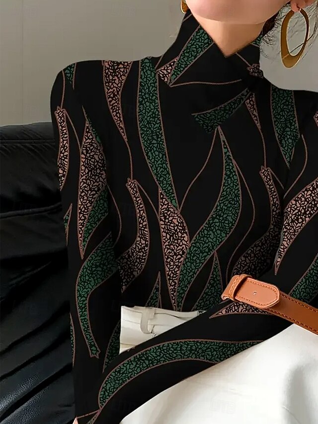 Tops Type: T Shirt, Fabric: Polyester, Gender: Women's, Design: Print, Occasion: Daily, Style: Casual, Elegant, Trendy, Vintage, Stylish, Classic, Category: Long Sleeve T-shirt, Fit Type: Form Fit, Neckline: High Neck, Asymmetric Neck, Sleeve Length: Long Sleeve, Elasticity: Micro-elastic, Look After Me: Washable, Machine wash, Top Length: Regular Tops, Pattern: Graphic, Abstract, Geometry, Season: Spring, Winter, Fall,
